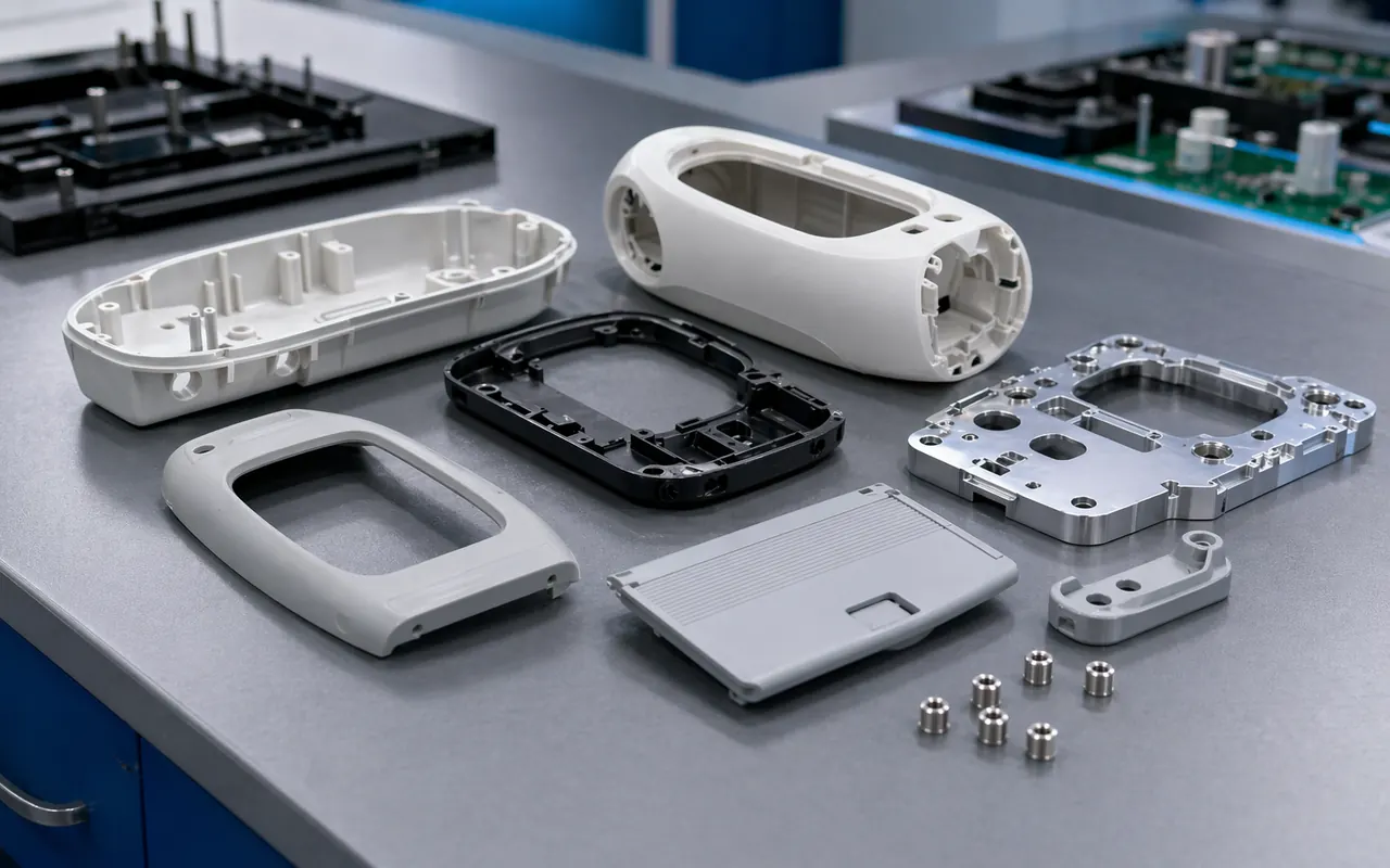 A single enclosure program may use several processes. Use 3D printing for shape and ergonomic learning, CNC machining for datums and precise interfaces, and sheet metal when the enclosure needs bent covers, shields, trays, or pilot panels.